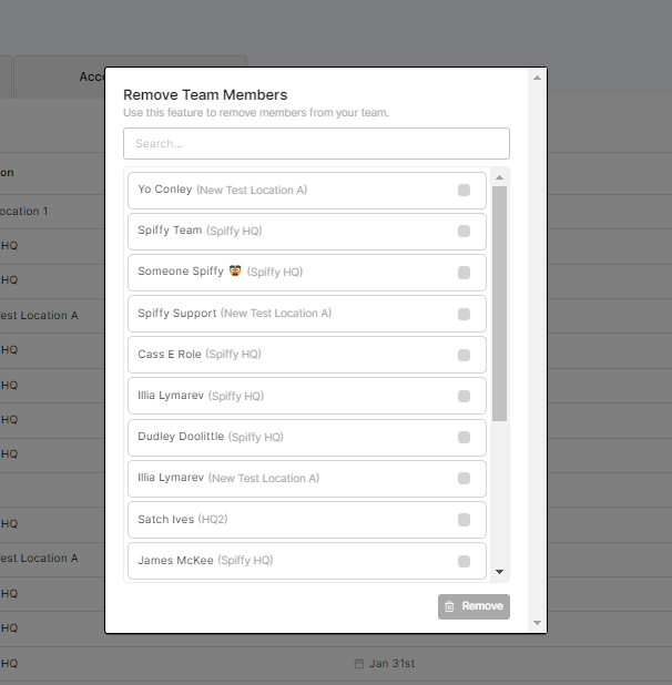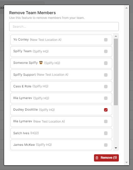- From their you can select team members you would like to remove in the pop-up by checking the box beside their name